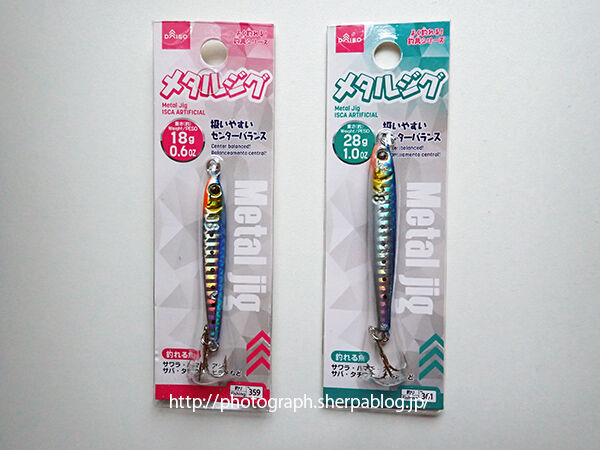 これまでもダイソーではジグベイド、ジグロックでジグ系は販売されていました。そしてメタルジグとして登場したのがこのシリーズ。センターバランスと表記されているように重心をセンターにおいたスリムなジグです。