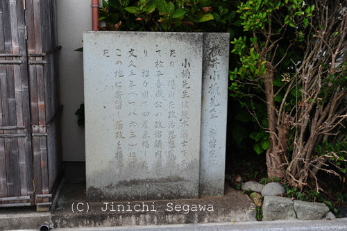 こちらは横井小楠寄宿跡の碑。いまは一般民家の軒先に建てられています。