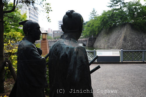 福井で龍馬にとって大きな出会いとなった二人の銅像が福井城のお堀脇にある内堀公園に立っています。