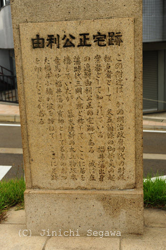 川を挟んであるのが由利公正宅跡。小楠に連れられて由利宅に招かれた龍馬は意気投合したとのこと。