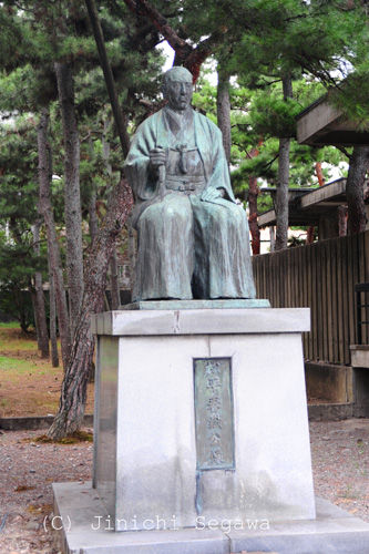 もうひとつは、春嶽を主祭神とする別格官幣社福井神社。昭和18年に創建され、銅像は春嶽の晩年のころの風貌です。